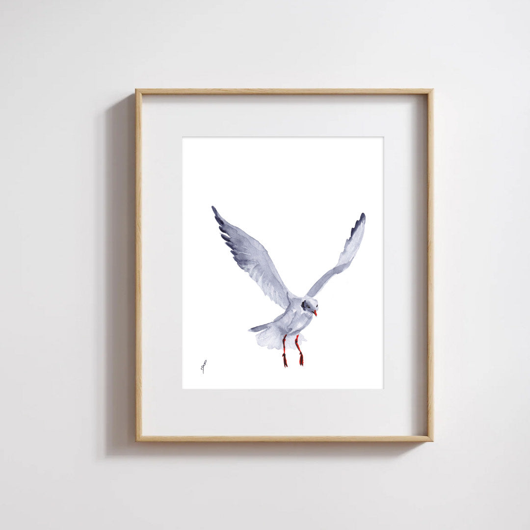 Sketched on a breezy day, Weightless captures the timeless grace and motion of a gull midair. I painted this piece after watching a lively flock tussle over a bagel –– a simple, joyful moment that had me cracking up as I was reminded of the humour that can be found in everyday nature, not just the beauty. The soft, airy washes of watercolour give this bird a sense of freedom and lightness, like wind over waves.